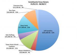 The last PAC I will call out is called the Constituents Focus PAC. This one is interesting, in part because $55,000 of its donations came from the Texas Home School Coalition PAC. Yes, that’s the same one that I just detailed above.