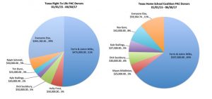 When I went and pulled the campaign finance reports on these PACs from the Texas Ethics Commission website, lo and behold, here were the same names that had been funding Empower Texans. What I have figured out also is that a handful of other big dollar families seem to run in the same “orbit” as the Wilkses. If the Wilks family gives to a cause or a candidate, the others seem to do the same. Granted, there is a candidate or a PAC here or there that doesn’t seem to have everyone pile on, but there is certainly a pattern among these families: