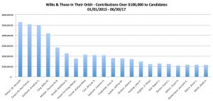 The Beneficiaries This group of families has invested HUGE dollars into a handful of political candidates. I’ve consolidated the contributions to those candidates from what I call the “Wilks & Their Orbit.” Here is the list of those candidates who have received more the $100,000 as of June 2017 from this small group of people and the PACs they fund: