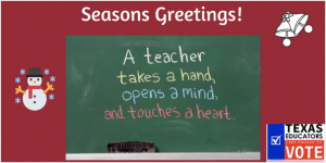 As you end the school year and cozy up for the holidays, please enjoy the last weekly wrap-up of 2019 from the ATPE Governmental Relations team. The ATPE state office will be closed from Dec. 23 to Jan. 4, reopening on Jan. 6, 2020. Expect our next Teach the Vote weekly wrap-up blog post to be published on Jan. 10, 2020.