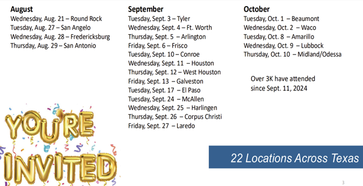 Below are the dates of 22 TRS-Care health fairs across Texas where TRS plan participants can learn about their 2025 benefits.